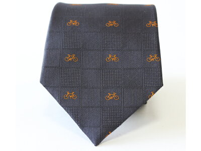 チャコールグレーベース(格子地紋)に黄色自転車柄ネクタイ ●素材:絹100% ●サイズ:幅8.5cm×143cm ●カラー:チェックネクタイ 自転車柄 ●生地:日本製 ●縫製:日本製 ※ディスプレイ画面等の環境上、写真と実際の商品の色とは多少違う場合がございます。