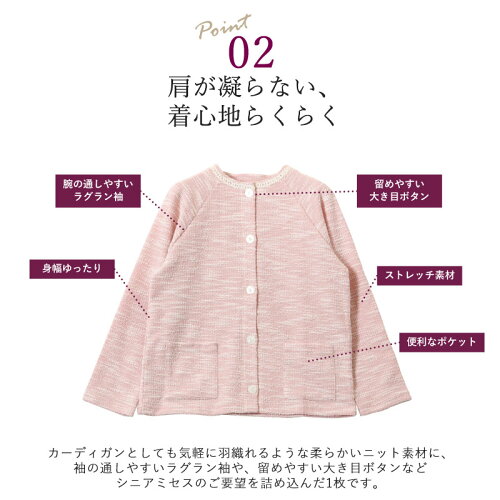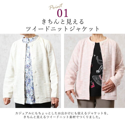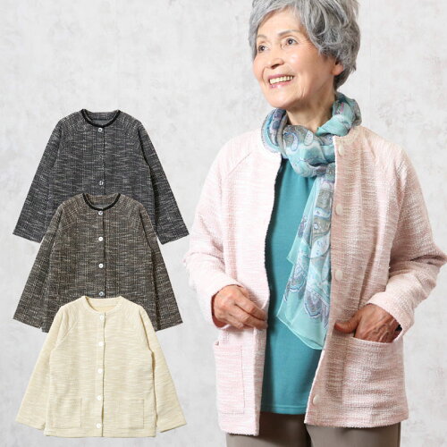 ツイードニット カーディガン ジャケット(シニアファッション 70代 80代 60代 春夏 秋冬 送料無料 祖母 ハイミセス 婦人 レディース おばあちゃん服 お年寄り 高齢者 春夏 プレゼント 誕生日プレゼント)